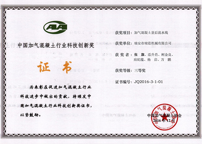 2016中國加氣混凝土行業(yè)科技創(chuàng)新獎(jiǎng)
