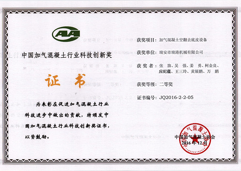 2016年中國加氣混凝土行業(yè)科技創(chuàng)新獎(jiǎng)-空翻